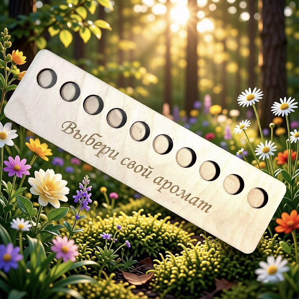 Надпись "Выбери свой аромат" Диаметр вырезов 24 мм