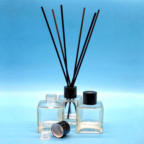 Стекло 50 мл цвет прозрачный, внутренняя пластиковая заглушка, алюминиевая черная крышка. Ротанговые палочки в комплект не входят!