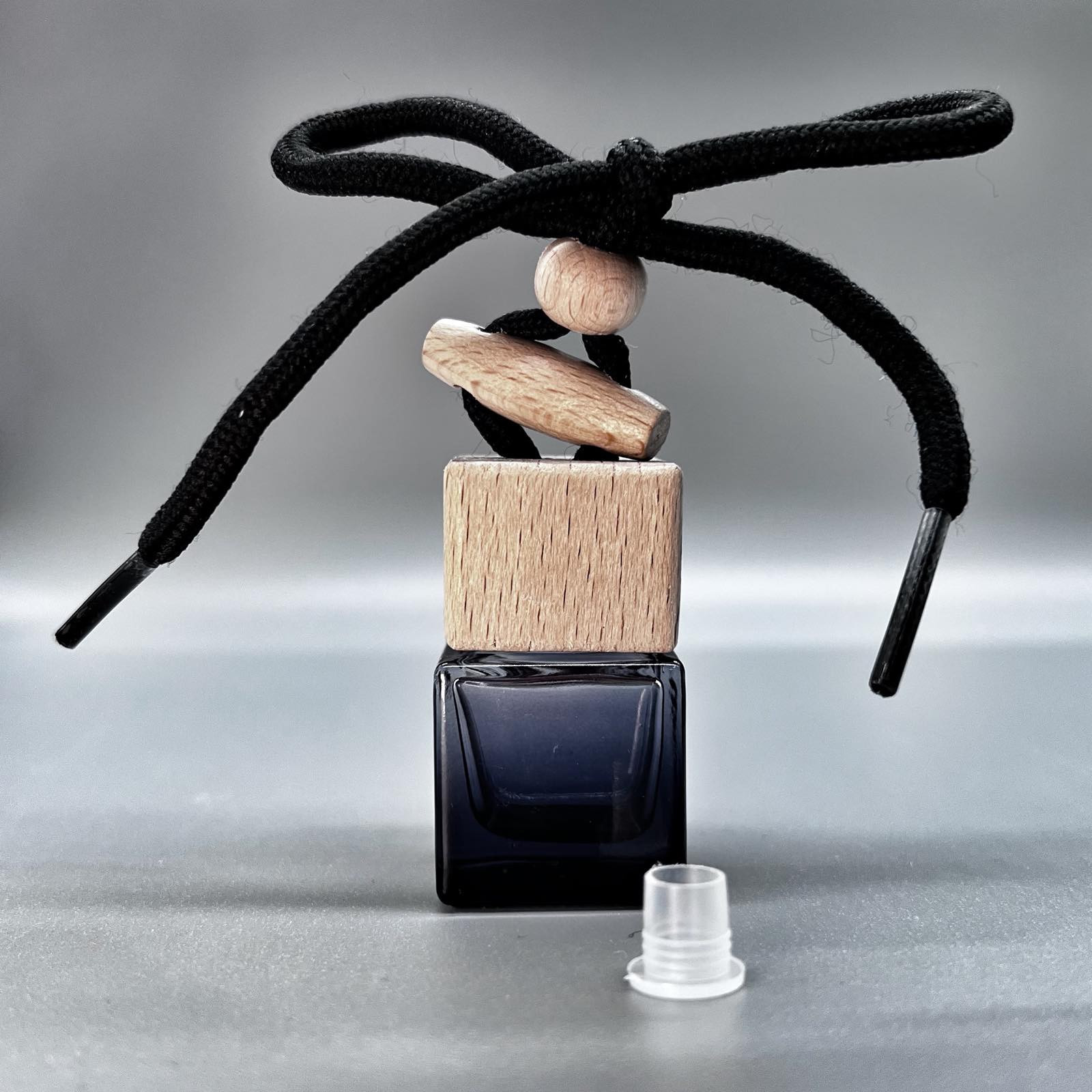 Черный шнурок позволяет легко закрепить флакон на зеркале заднего вида автомобиля. В комплекте также имеется заглушка для транспортировки, которая защищает ароматизатор от случайных проливов при перевозке.