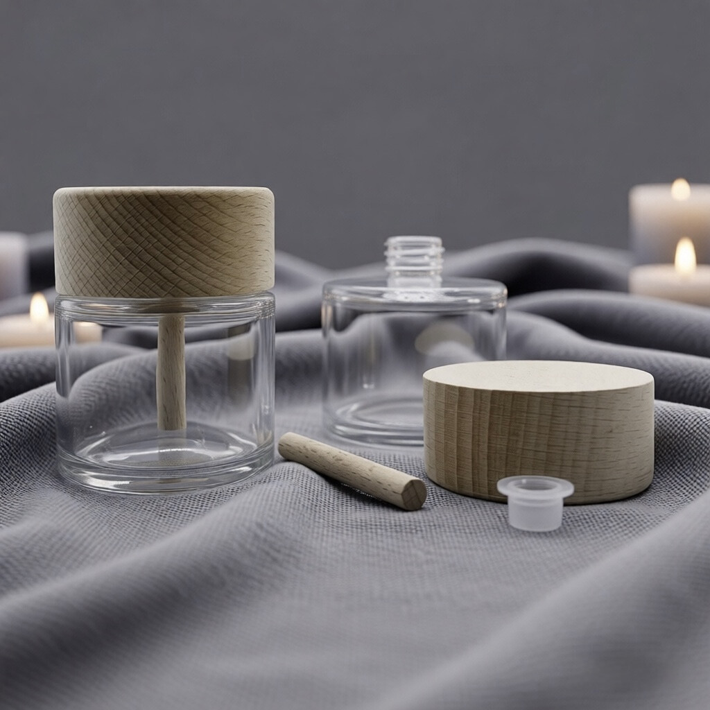 Стекло 50 мл, цвет прозрачный, крышка-диффузер деревянная, палочка деревянная, заглушка пластик.