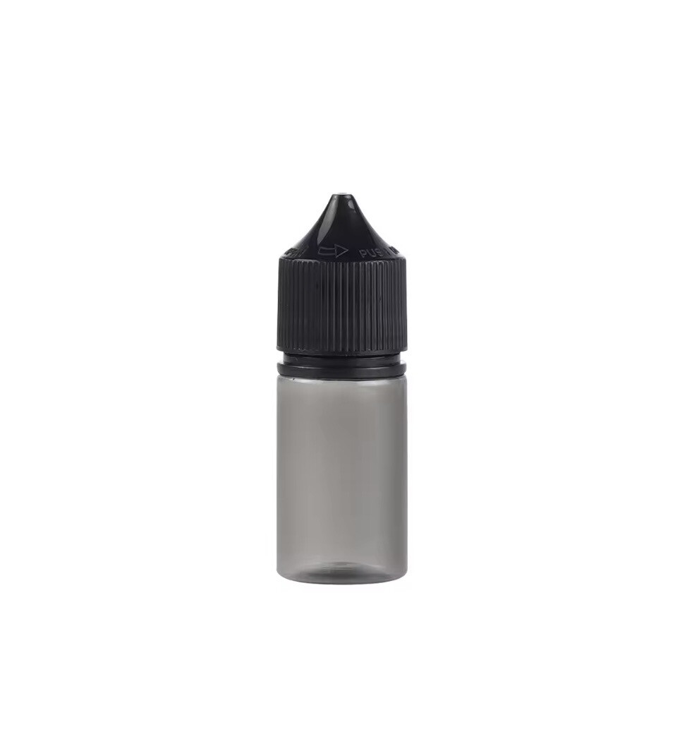 Флакон темный, носик, крышка черная ( из пластика).