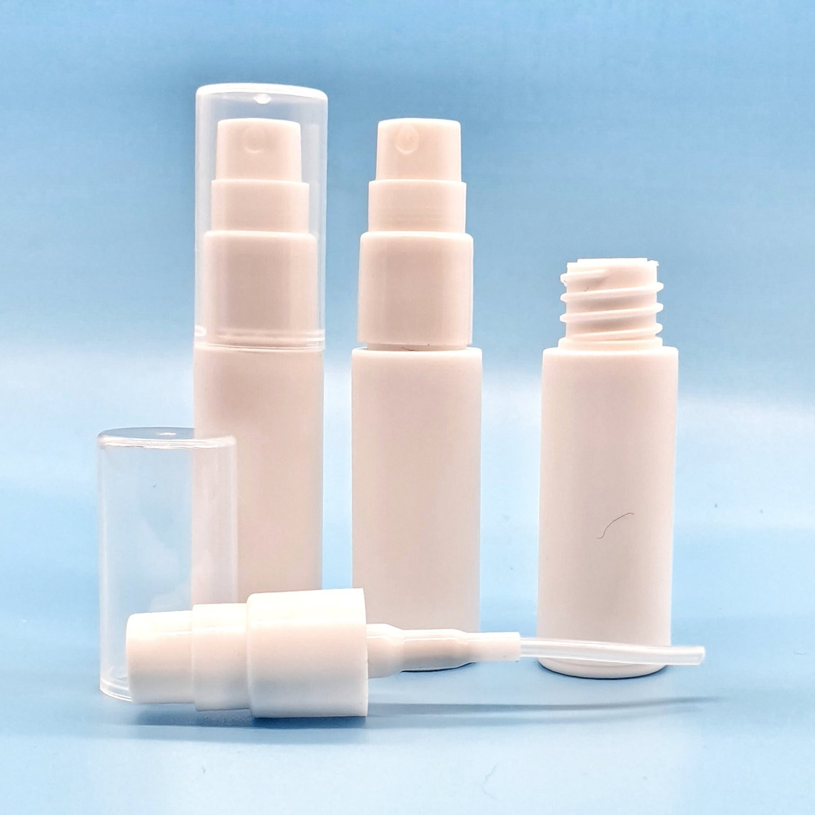 Пластиковый флакон белого цвета, крышка-спрей с трубкой.